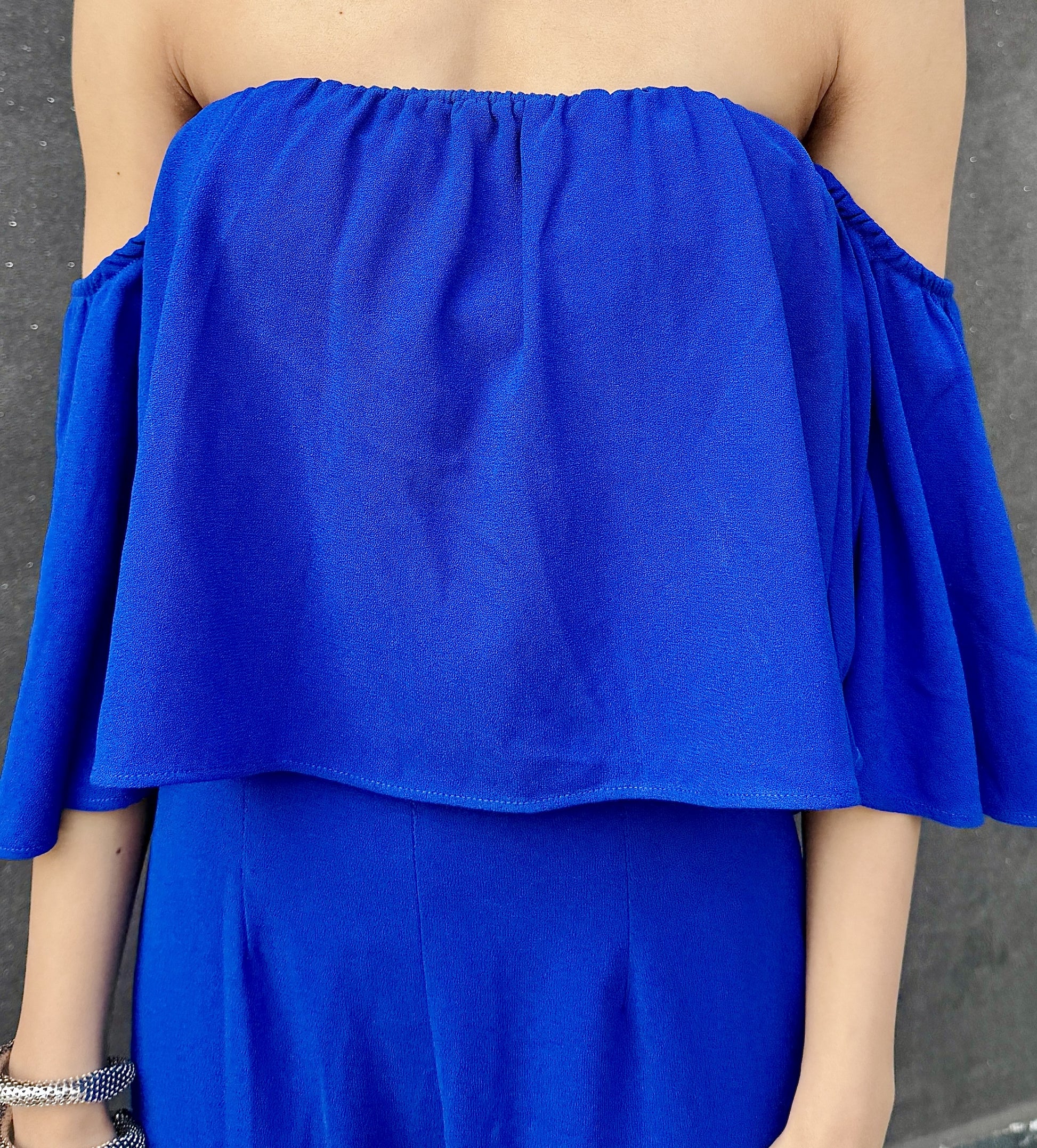 Effortlessly chic, this georgette jumpsuit features a flattering off-shoulder neckline that sits straight across both shoulders, creating a sophisticated bardot silhouette. Designed with a flowing, relaxed fit, it combines comfort with modern elegance — perfect for brunches, evening outings, or special occasions.